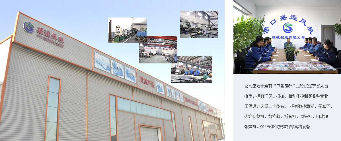 營(yíng)口盛運(yùn)風(fēng)機(jī)機(jī)械制造有限公司是一家從事各類(lèi)風(fēng)機(jī)機(jī)械、除塵系統(tǒng)的研發(fā)、設(shè)計(jì)、制造為主的專(zhuān)業(yè)生產(chǎn)企業(yè)。公司座落于素有“中國(guó)鎂都”之稱(chēng)的遼寧省大石橋市,